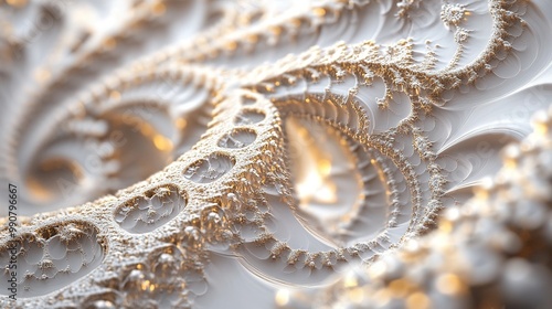 Fototapeta premium An intricate, swirling design featuring delicate, textured patterns in gold and white, resembling natural forms and abstract art.