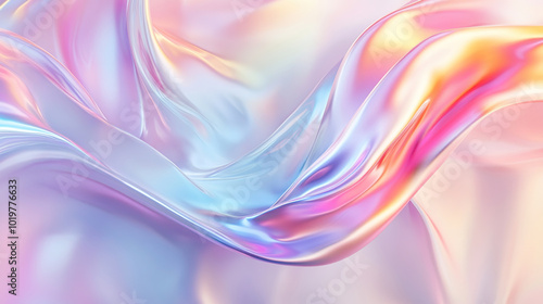 Fototapeta premium An iridescent fluid abstract image with vibrant colors in a smooth, flowing style on a soft gradient background. Concept of modern art