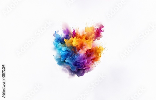 © YiuCheung, Fototapeta premium An isolated abstract burst of color with vibrant hues of blue, purple, orange and red against a white background.