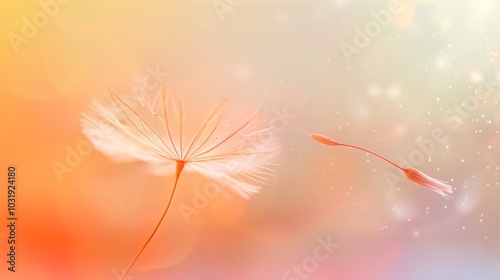 Naklejka premium An isolated, delicate dandelion seed floating on a light gradient.