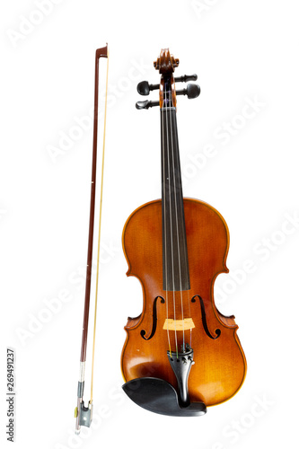 © nakhonthesis, Obraz premium An isolated vertical image of violin, string music instrument in orchestra.