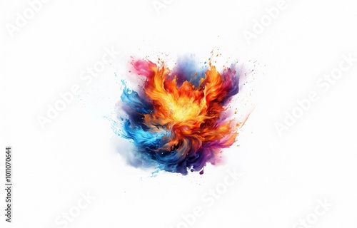 Fototapeta premium An isolated vibrant explosion of colorful paint on a white background.