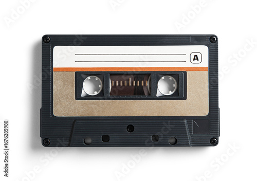Fototapeta premium An isolated vintage-style cassette tape casting a soft shadow that emphasizes...