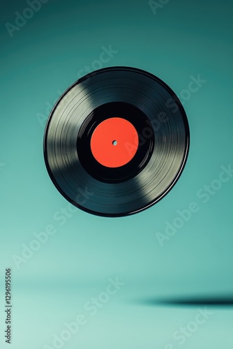 © boler, Fototapeta premium An isolated vinyl record hovers suspended above a blue surface