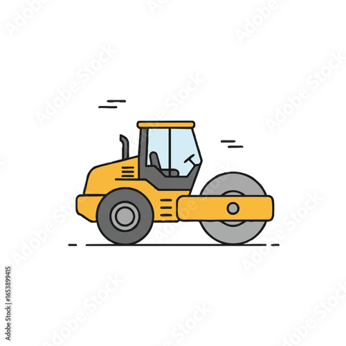 © aan, Fototapeta premium An isolated yellow road roller icon, representing heavy construction machinery and road work, designed with a modern flat line art style.