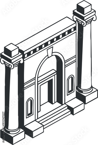 Fototapeta premium An isometric illustration of a classic architectural archway with columns in...