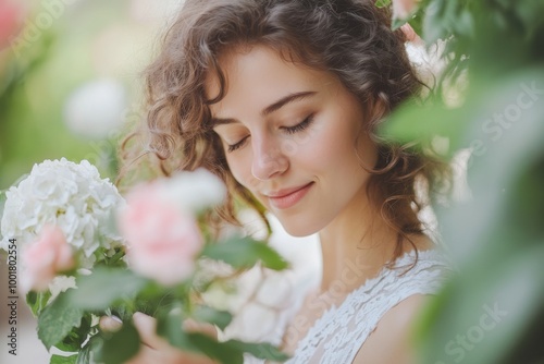 © Halina Berah, Fototapeta premium An ivy-covered young woman with flowers