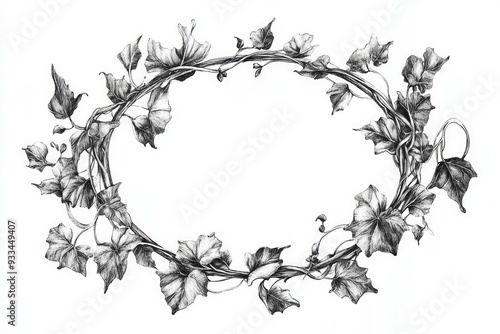 © Bold24, Naklejka premium an ivy vine oval frame. Ink drawing in white background