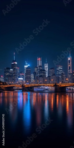 Fototapeta premium An 8K vertical wallpaper capturing the vibrant energy of a bustling city skyline at night, illuminated by dazzling lights and reflections