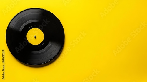 © Антон Сальников, Fototapeta premium An LP vinyl record on a yellow background with a top view of a turntable