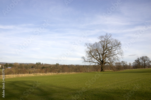 © MARK BOND, Fototapeta premium An Oak tree in winter in a park with blue sky