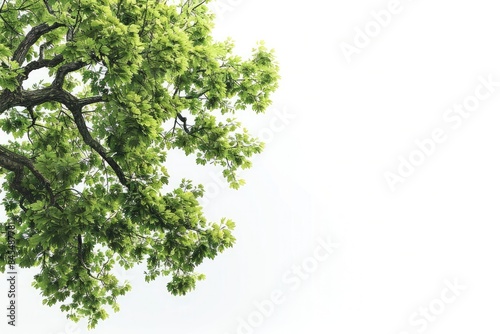 Obraz premium An oak tree with lush green foliage and vibrant leaves against a white backdrop