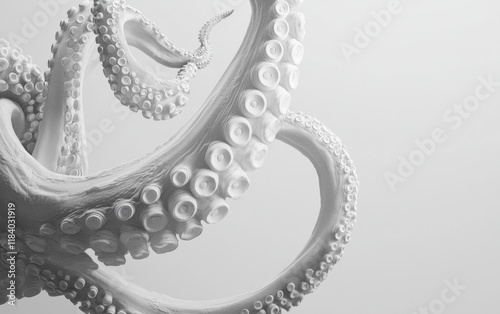 Obraz premium An octopus tentacle dynamically suspended mid-air, with visible texture...