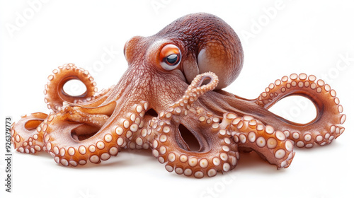© Elmin, Obraz premium An octopus with its many arms is shown on a white background. --ar 16:9 --v 6.1 Job ID: 0fde0543-1cb4-4792-88e9-ff6bdceca8bb