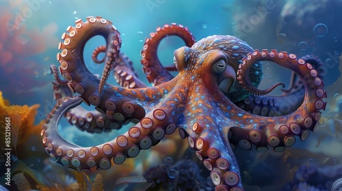 Fototapeta premium An octopus with swirling tentacles glides through the underwater realm, its...