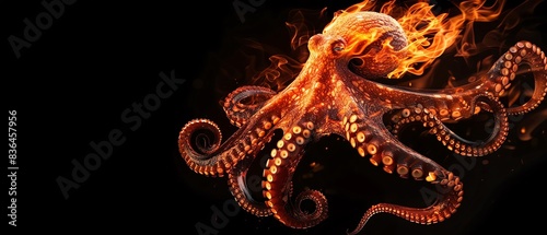 © Thanakrit, Obraz premium An octopus with tentacles of writhing fire