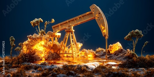 © Supot, Fototapeta premium an oil pump jack operates on the ground, pumping up crude oil