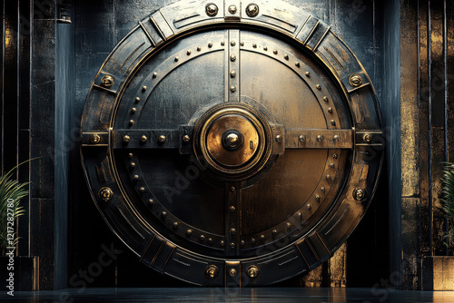Naklejka premium An old bank vault that's closed looking at the vault door directly ahead
