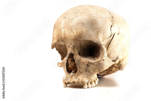 © Fredrik, Obraz premium An old, cracked real human skull