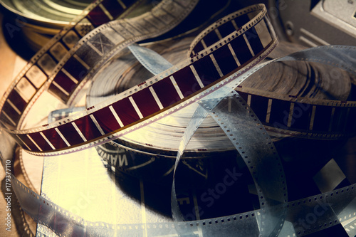 © kanzefar, Fototapeta premium An old film with a movie on the roll.
