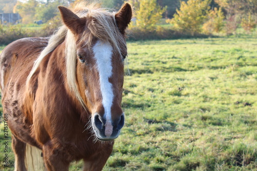 © PeSchne, Obraz premium an old horse on the autumnal pasture