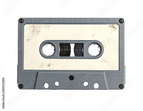 © Maximuz, Fototapeta premium An old retro compact cassette tape with a clear case, isolated on a white background, vintage technology.