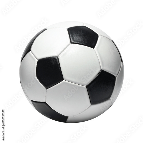 Fototapeta premium An old, round leather soccer ball isolated on a white background is ready for a game of sport