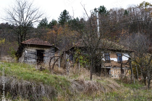 © oljasimovic, Obraz premium an old ruined, abandoned village house