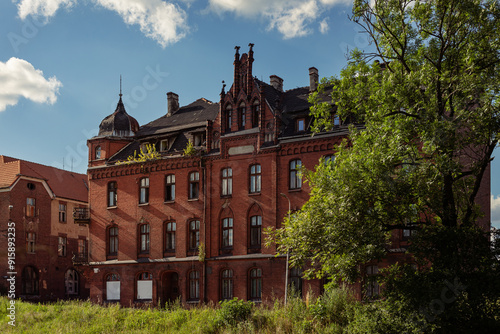 © Hallgerd, Fototapeta premium An old, ruined brick tenement house