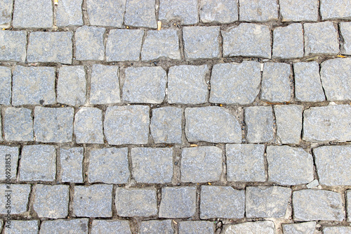 Obraz premium An old stoneblock pavement cobbled with square stone blocks