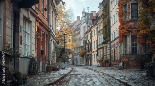 Fototapeta premium An old town cityscape, cobblestone streets, historic architecture, modern...