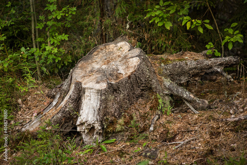 © Ekaterina, Obraz premium an old tree stump in the forest, selective focus