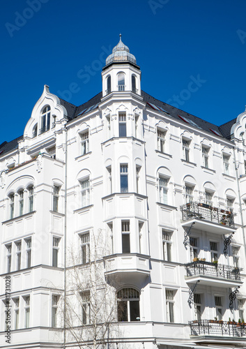 © elxeneize, Fototapeta premium An old white residential building seen in Berlin