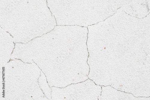 © Niko_Dali, Fototapeta premium An old white wall with a cracked texture is decorated with cement mortar
