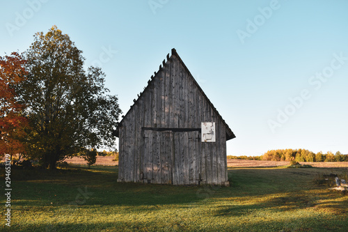 © Sulev, Obraz premium An old wooden barn on a field in autumn