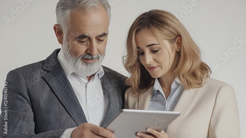 © Alloca Design Studio, Fototapeta premium an older man and a woman looking at a tablet
