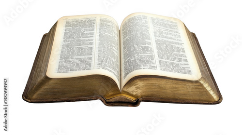 © Usman, Obraz premium An open antique book with gold edged pages displaying text against a black background in bright light