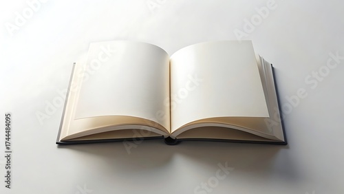 Obraz premium An open blank book with clean white pages casting a subtle shadow isolated on...