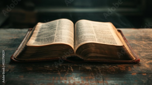 Fototapeta premium An open book on a clean wooden table