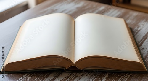 © MDSABBIR, Fototapeta premium An Open Book On A Wooden Table