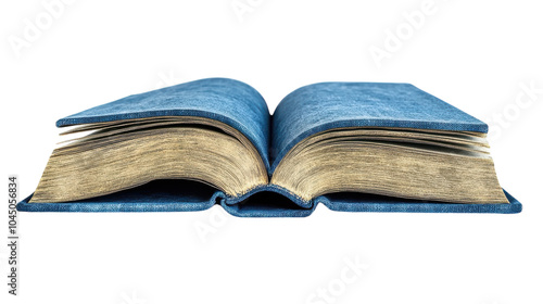 Obraz premium An open book showing intricate pages and a textured cover on a clean, bright...