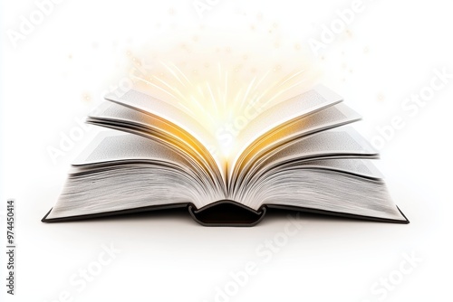 © Sakiyah, Obraz premium An open book with glowing light emerging from the pages, magical knowledge concept, 3D rendering, isolated on white background