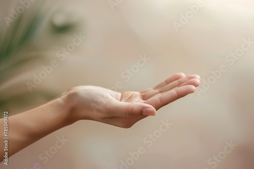 Fototapeta premium An open hand gesturing against a soft blurred background.