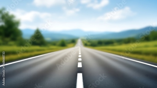 Naklejka premium An open road journey on a sunny day, promising adventure and freedom, with a blurred scenic background.