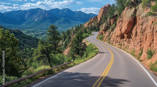 Fototapeta premium An open road through a mountainous region with a scenic view under a bright,...