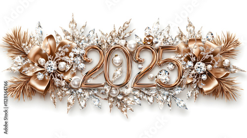 © Pter, Fototapeta premium An Opulent Representation of 2025 Featuring Ornate Letters and Elegant Christmas Decorations