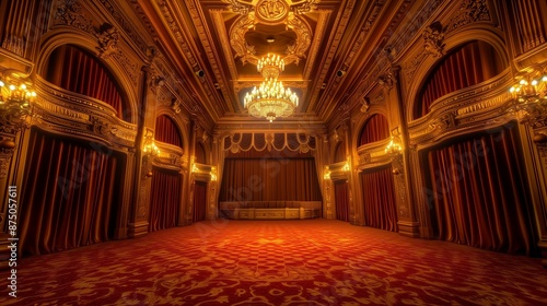 Obraz premium An opulent theater with plush red carpeting, golden accents, and a grand...