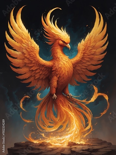 © AriesWarrior, Fototapeta premium an orange phoenix rising from ashes