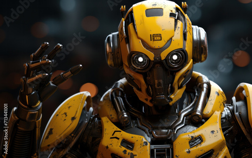 © Oleksandr, Fototapeta premium An orange robot worker is operating at the factory, generative AI
