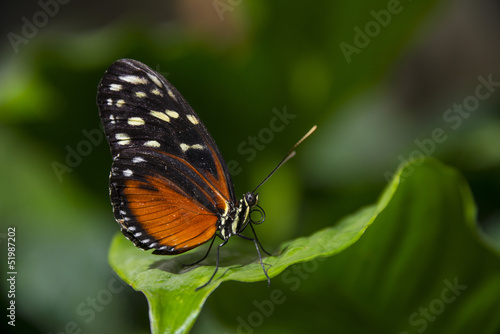 Fototapeta premium an orange tropical butterfly sitting on a leaf